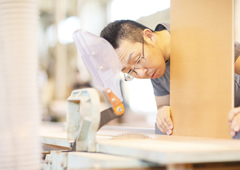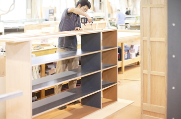 お客様のニーズにお応えするため、設計された家具や什器などは製作精度により使いやすく愛着のわくものとなります。 それは高度な設備や技術もさることながら、オーナー様またはエンドユーザー様を思う製作者の心が精度を上げ、アイディアを加え完成度の高い作品とするのです。 サンエス装備の制作陣は工場におりますが、さらに先の時間を見つめ働いております。